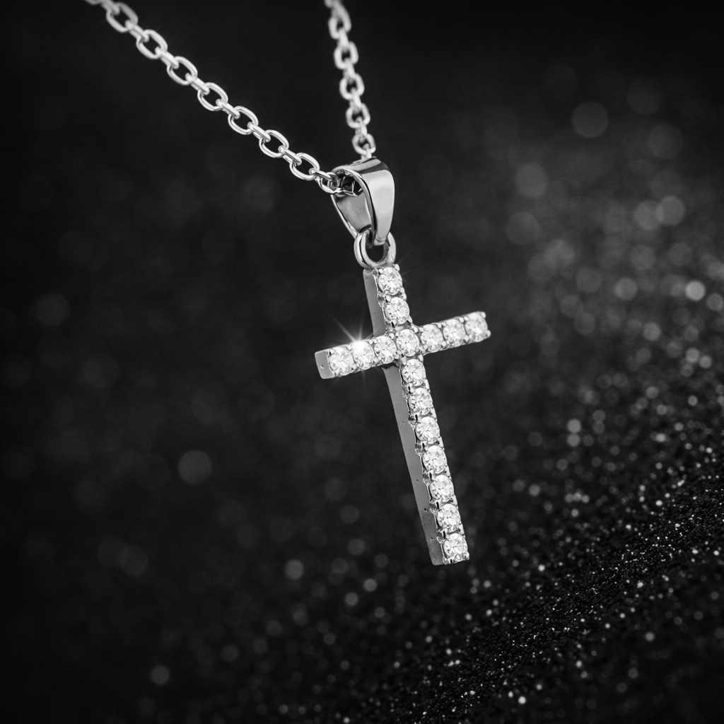 Lantisorul realizat din otel inoxidabi, cu cruciulita decorata cu zirconiu. Design minimalist, unisex,gandit pentru puratare zilnica si outfituri simple, fara exces, dar cu impact vizual subtil.